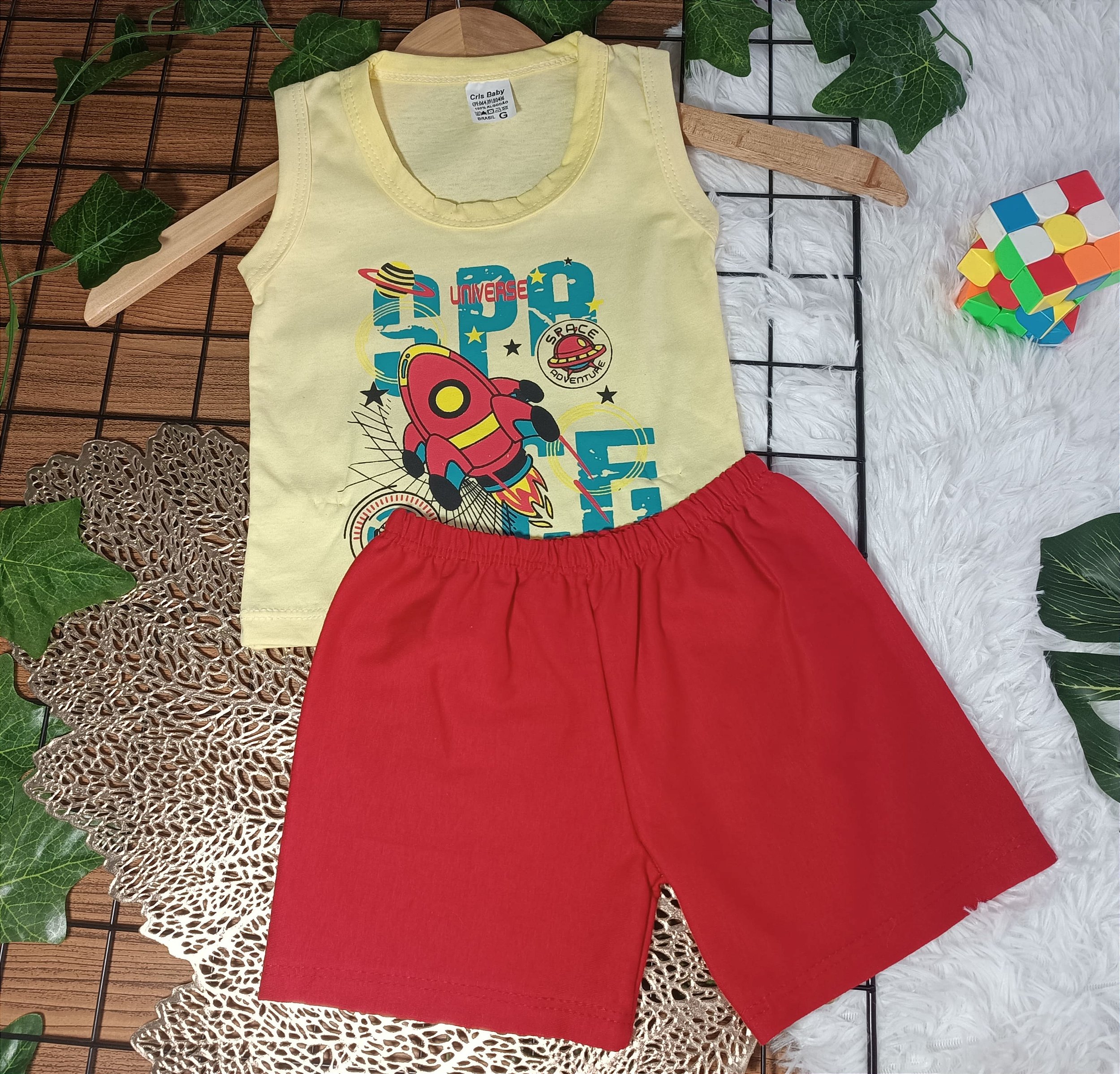 O Conjunto Baby Foguete é a escolha perfeita para os pequenos desbravadores do universo! Composto por uma divertida camiseta sem mangas em tom amarelo claro, estampada com um foguete colorido e elementos espaciais, e um short vermelho confortável, este conjunto foi projetado para proporcionar liberdade de movimento e muito estilo. Feito com materiais de alta qualidade e suaves ao toque, é ideal para o dia a dia e para as aventuras dos pequenos. O design alegre e vibrante vai encantar as crianças e os pais, tornando qualquer ocasião especial. O Conjunto Baby Foguete é perfeito para momentos de lazer, passeios no parque, ou até mesmo para um dia tranquilo em casa. Disponível em várias numerações, garante que seu pequeno esteja sempre confortável e na moda. Escolha o Conjunto Baby Foguete e leve a diversão e a criatividade para o guarda-roupa do seu filho!